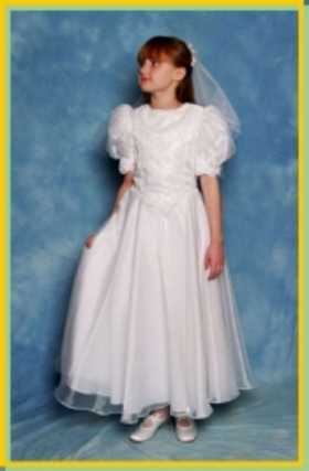 An elegant, full length dress in soft organza, with a slim fitting bodice and flowing circular skirt. The centre panel of the bodice is delicately embroidered and scattered with pearls and the puff sleeves are edged with matching embroidered cuffs. The waist is gently v-shaped in the front and back. The zip flap is covered with a long line of pearl buttons and finishes with three small organza rosettes at the waist. The dress is fully lined. Material: 100% polyester organza Sizes available: 6,8,10,12 Price: £89 |
