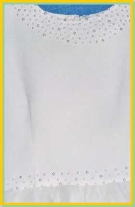 This simple, sleeveless, full length dress comes with a matching jacket. The duchess satin bodice features pearl beading at the neck and waist and the tulle skirt is scattered with small appliqués. The duchess satin bolero jacket is plain, with simple beading at the base of the sleeves. Both dress and jacket are fully lined and the underskirt is netted. Material: 100% polyester duchess satin and tulle Sizes available: 6, 8, 10 Price: £85 |