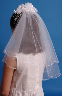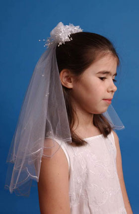 Organza flower and pearl spray on a comb, with attached 36" veil scattered with small pearls and crystals.